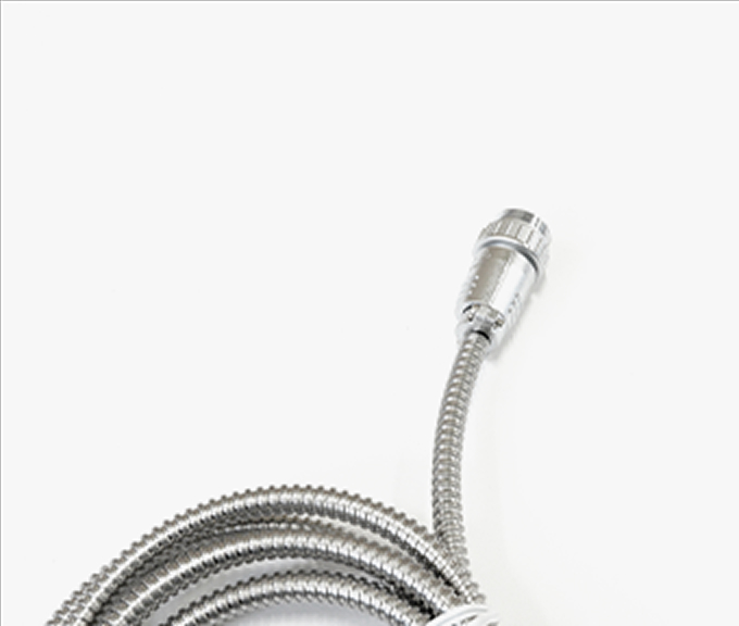 完全防水・耐油構造(保護等級IP68)を実現。本体への水や油の侵入を許さず、丸洗いも可能です。さらに、非接触充電方式を採用し、充電端子の腐食や故障の心配もありません。